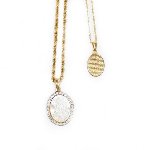 Colar folheado ouro 18K e Pingente Nossa Senhora com ZircôniasColar folheado ouro 18K e Pingente Nossa Senhora com Zircônias